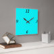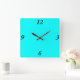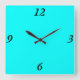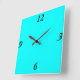 Belo relógio da parede turquesa com números pretos. Legal cor e números legal em um relógio para uma aparência de excelente.