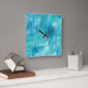 Relógio Quadrado Turquesa Abstrata Azul