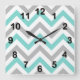 Relógio Quadrado Turquesa, Cinza, Padrão De Grande Chevron ZigZag