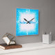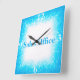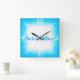Relógio Quadrado Turquesa em branco, monograma - brilho |