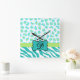 Relógio Quadrado Turquesa Zebra Verde Branca Leopardo Leopardo Mono