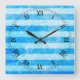 Relógio Quadrado Turquoise Blue Sea Stripes