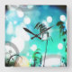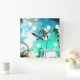 Relógio Quadrado Turquoise Grass Art Sparkle Wall Clock