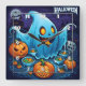 Relógio Quadrado Um fantasma lúdico do Halloween com abóboras à noi
