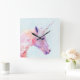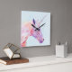 Místico Unicórnio I de Victoria Borges. Possui um unicórnio rosa e roxo com traços semelhantes a pincel.