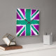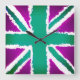Relógio Quadrado Union Jack Art Purple Tones Wall Art