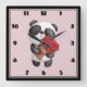 Relógio Quadrado Urso Panda Bonito com Rose Bouquet