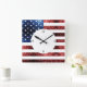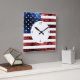 Desvio para casa do relógio de parede para seu quarto patriótico. A bandeira dos EUA em vermelho e azul brilha. Usamos a fotografia de faíscas e não as falhas reais.