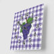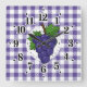 Relógio Quadrado Uvas em Xadrez violeta branca