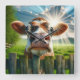 Relógio Quadrado Vaca Whimsic Purgando Sobre Cerca
