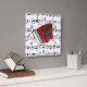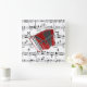 Relógio Quadrado Vamos Polka, acordeão vermelho em partituras,