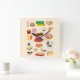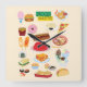 Uma ilustração vetorial de diferentes variedades de comida, como algodão doce, hambúrguer, camarão frito, gyoza, pizza, batata frita, cachorro-quente, donut, corndogs, geléia, ramen, lasanha, sundae, sorvete, muffin, nachos, mochi, sushi, sanduíche, bolinho de arroz e taco.