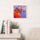 Relógio Quadrado Vaso Vermelho Brilhante de Flores
