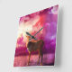 Magnífico Stag no sol rosa da manhã e nuvens neste caso