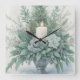 Relógio Quadrado Vela de Natal dos Tonos Verdes Suaves