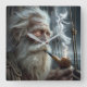 Um velho marinheiro com barba branca comprida e rugas profundas se espanta em forma de mulher dançando de seu cachimbo fumante