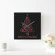Relógio Quadrado Vermelho Metálico Estrelas Árvore de Natal Preto E