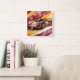 Relógio Quadrado Vermelho Race Car Watercolor Amarelo