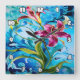 Relógio Quadrado Vibrant Lily Blooms Contra Azuis