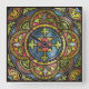 A bela design intrincada de uma janela de vidro manchado medieval.