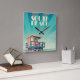 design da Praia do Sul de Miami com estrelas e tramas de salva-vidas em branco vermelho e azul nas areias de South Beach contra um céu azul com safra