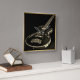 Relógio Quadrado Violão Negro Elétrico a Preto, Trim Dourado em um