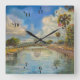 Trabalho de arte de pintura de uma bela natureza tropical projetada com marcadores de hora e minuto em qualquer Zazzle Wall Clocks. Vista da ponte ambulante do lago Nalcrest na Flórida. Grandes nuvens maravilhosas acima do lago. Palmeiras e bandeira americana. Calma e tranquilidade. #Pintura #Arte #Relógio #Tropical #Natureza #Cena #Lago #Água #Nuvens #Zazzle #ZazzleMade #Palms #Flag #Paisagem #Ponte