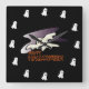 Esta design apresenta um fantasma voando à noite com o Feliz Dia das Bruxas impresso em preto e vermelho. Os números são representados por fantasmas. Um presente de excelente para dar para o amante de halloween. Estes relógios vêm em quadrados ou redondos.