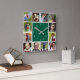 A colorful wall clock with 12 personal photos placed around the clock face of a dark color. The photos are easily replaced with you own by using the template.