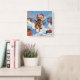 Relógio Quadrado Wheaten Terrier correndo em neve com chapéu de Nat
