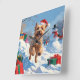 Um alegre Vestido Terrier atravessa a cena de inverno nevado, vestindo um chapéu de Natal vermelho festivo. Este charmoso design destaca o suave casaco, animado espírito e afetivo da raça enquanto capta o calor e a alegria da época de férias. Um maravilhoso momento de inverno cheio de alegria festiva.