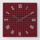 Relógio Quadrado Xadrez de búfalos vermelho e preto Elegante, verif