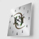 Relógio Quadrado Yin Yang Lizards Números Pretos Prateados