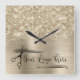 Relógio Quadrado Your Logo Glittery Pale Gold Glam