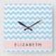 Relógio Quadrado Zigzag Azul, Chevron Azul, Padrão De Onda, Seu Nom