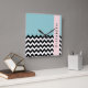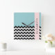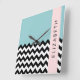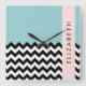 Relógio Quadrado Zigzag preto-e-branco, Chevron, azul, seu nome
