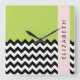 Relógio Quadrado Zigzag preto-e-branco, Chevron, verde, seu nome