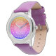 Este relógio divertido é certamente um favorito de qualquer jovem ou adolescente. Há uma mandela branca sobre um fundo ao estilo arco-íris de cor amarela, laranja, vermelha, rosa, roxa e azul. A observação é mostrada com uma banda de observação roxa, mas você pode personalizá-la com muitas outras opções.
