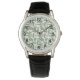 Este relógio masculino tem um design de inverno feito de vários ramos diferentes e dois tipos de pinecones.