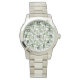 Este relógio feminino tem um design de inverno feito de vários ramos diferentes e dois tipos de pinecones.