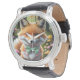 Relógio Raposa-branca com arco verde e rosa