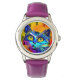 Apresentando um fôlego tendo em vista um gato de animal de inteligência artificial cara Paint caindo em cima da foto .este é um belo design digital neste relógio