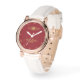 personalized watch, red dial, gold watch, white leather strap, elegant wristwatch, monogram gift, luxury accessory, custom initials, timeless fashion, classic design