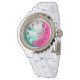 Elevem o seu estilo com o deslumbrante Observatório Branco da Rhinestone das Mulheres. Apresentando um bezel atraente, adornado com cristais envolventes e uma pulseira elegante de liga de esmalte, disponível em preto ou branco, este relógio é uma mistura perfeita de elegância e sofisticação. Na moda e prático, este relógio não só mantém o tempo como também faz uma ousada declaração de moda. O rosto único do relógio mostra um padrão vibrante, rosa e verde, de tinta gravada, adicionando um talento artístico e lúdico ao seu olhar.