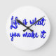 A vida é o que você faz. Um pensamento sobre a vida. Texto cursivo azul com efeito aflitivo.