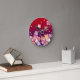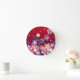 Relógio Redondo Abaixo de Sakura Flores Japoneses Vermelho e Roxo