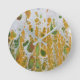 A impressão é tirada de uma pintura de abstrato usando amarelos verdes e cobre.