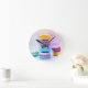 Relógio Redondo Abstrato de Comida de Macaroon de Aquarela
