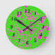 Relógio Redondo Abstrato Neon Green e Purple Retro Wall Clock