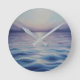 Este relógio sereno apresenta uma cena de aquarela tranquila sonhadora